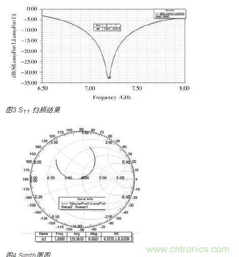 圓形輻射貼片半徑:a=5.216 mm;介質(zhì)基片厚度:h=2.021 mm;介質(zhì)基片半徑2*a;饋電點(diǎn)位置:L=1.863 mm;內(nèi)芯半徑:n=0.516 mm;外芯半徑:m=1.854 mm。