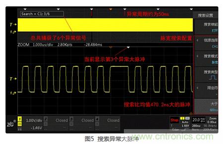 ZDS2000示波器提供了觸發(fā)、測(cè)量、搜索、FFT等多種強(qiáng)大功能,但異常信號(hào)的不確定性非常大,實(shí)際應(yīng)用中,還是應(yīng)視具體情況,靈活組合運(yùn)用,才能最大程度的提高工作效率。