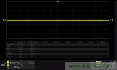 但是當(dāng)垂直檔位越大,量化噪聲逐漸占主導(dǎo)地位,而模擬前端噪聲雖然會(huì)隨著放大器的增益變化產(chǎn)生微小的改變,但是仍然在2mV以下。