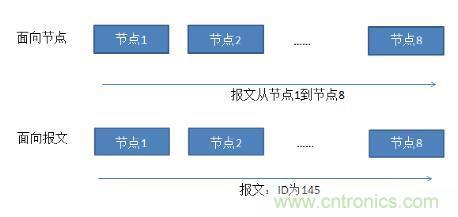 圖3.面向節(jié)點(diǎn)和面向報(bào)文的數(shù)據(jù)通信