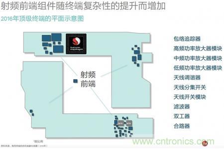 一方面,高端智能手機(jī)不斷推陳出新,屏幕越來(lái)越大、機(jī)身越來(lái)越輕薄,這些變化直接導(dǎo)致射頻前端組件的物理空間減少;另一方面,考慮到大尺寸屏幕對(duì)電池續(xù)航的影響,射頻前端的設(shè)計(jì)要比以往更重視電源使用效率;第三,網(wǎng)速越來(lái)越快,射頻前端模塊正在變得越來(lái)越復(fù)雜。