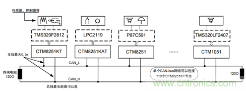 與485類似,CAN-bus也是以總線的方式進(jìn)行通信的,所有的CAN節(jié)點都掛在一對差分線上。但CAN總線中的節(jié)點不存在主從的概念,當(dāng)節(jié)點有數(shù)據(jù)需要上傳時可自主、即時發(fā)送,先進(jìn)的仲裁機(jī)制保證數(shù)據(jù)不會沖突。