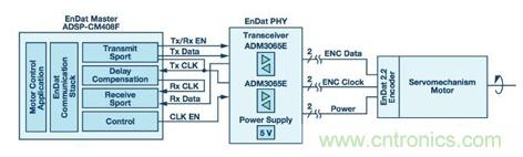 本文討論的EnDat接口是在ADI公司的ADSP-CM40x上實現(xiàn),后者是一款針對電機控制驅動器而開發(fā)的處理器。除了脈寬調(diào)制器(PWM)定時器、模數(shù)轉換器(ADC)和sinc濾波器等用于電機控制的外設以外,ADSP-CM40x還有高度靈活的串行端口(SPORT)。