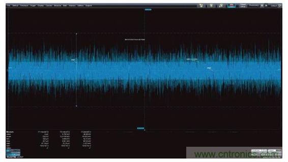 測量參數(shù)可以應用于圖2中的噪聲波形,以深入了解這種噪聲信號的特性。圖中顯示的參數(shù)有平均值、標準偏差和峰峰值。顯示器下方顯示了讀取的參數(shù)值。