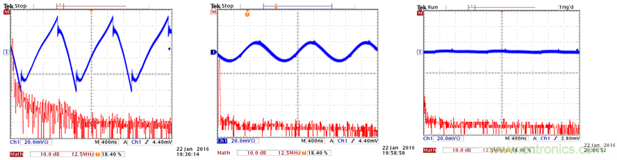 使用輸出濾波器(22µF 1206 MLCC + 0603 4A磁珠 BLM18SG700TN1)之后的結(jié)果
