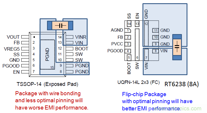 在噪聲敏感的應(yīng)用中,最好是選擇小型封裝的、電感很低的晶圓倒裝芯片。