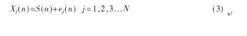 式中,S(n)為真實(shí)的被測(cè)量值,ej(n)(j=1,2,3...N)為第j個(gè)傳感器在n時(shí)刻的加性噪聲,Xj(n)為第j個(gè)傳感器在n 時(shí)刻的實(shí)際測(cè)量值。由于每個(gè)傳感器受到噪聲干擾的程度不同,所以實(shí)際測(cè)量值偏離真實(shí)的被測(cè)量值的程度也是不同的。