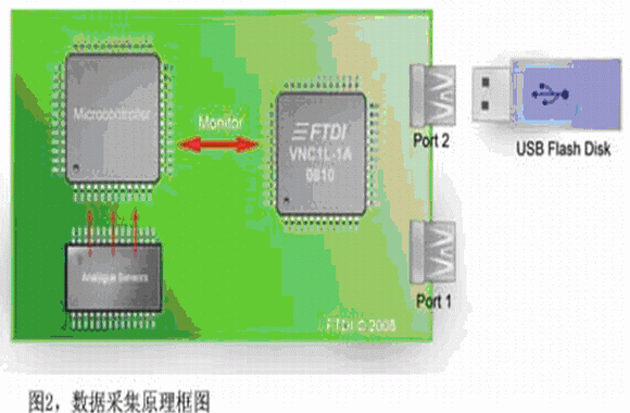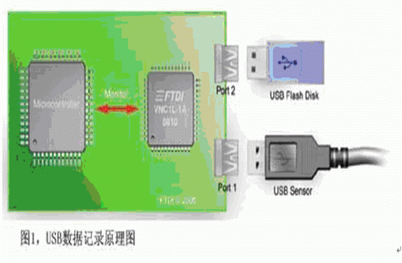 目前市場上有很多種數據采集設備可用于在PC上記錄數據,如National Instrument的LabVIEW,不過這類設備的傳感器件開始越來越多地采用USB接口而不是RS232或其他傳統(tǒng)接口。過去在嵌入式系統(tǒng)中應用USB設備需要性能相對較強的硬件,要帶有USB Host控制器接口、RTOS以及USB軟件驅動,結果因USB Host功能實施成本的原因設計工程師一直都不太愿意在小型8位或16位MCU系統(tǒng)上增加USB設備。但隨著最新一代智能USB Host控制器IC的推出,與MCU配合使用不僅可為PC應用使用USB數據采集設備,而且還可將數據存儲在低成本高容量的閃存盤上。