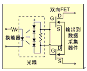 雙向FET器件是以一種叫做雙向FET輸出的結(jié)構(gòu)實現(xiàn)的,如圖3所示。該結(jié)構(gòu)有許多優(yōu)點,但最重要的是它能夠直接與TTL和 CMOS電路接口,而且它具有關(guān)態(tài)泄漏電流低和響應(yīng)速度快的特性。FET的意思是場效應(yīng)晶體管,它是一種最適合于用作數(shù)字傳感器輸出的器件,因為其工作特 性接近理想模型。