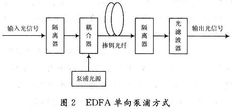 圖2為單向泵浦方式結(jié)構(gòu),此外還有反向泵浦,雙向泵浦方式結(jié)構(gòu)。