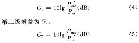 即,整體增益等于兩級(jí)增益之和,本文的整體光功率增益為: