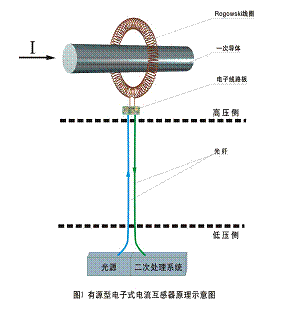 有源型電子式電流互感器特點是一次傳感器為空心線圈,高壓側(cè)電子器件需要由電源|穩(wěn)壓器供電方能工作。其原理如下圖所示: