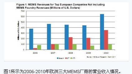 據(jù)IHS iSuppli公司的研究,2010年微機(jī)電系統(tǒng)(MEMS)產(chǎn)業(yè)蓬勃發(fā)展,總體增長了18%,而歐洲三家廠商更是取得了上乘表現(xiàn)。