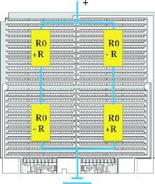 現(xiàn)代傳感器系統(tǒng)主要由兩個(gè)元件組成 —基本傳感器和信號(hào)處理專(zhuān)用集成電路 (ASIC)(圖 1)?,F(xiàn)已證明,后來(lái)由 Lord Klevin 于 1857 年發(fā)現(xiàn)的各向異性磁阻效應(yīng)特別適用于檢測(cè)磁場(chǎng)。首先考慮通常具有多種磁疇結(jié)構(gòu)的鐵磁性材料。這些稱(chēng)之為韋斯磁疇的結(jié)構(gòu),其內(nèi)部磁化的方向彼此不同。如果將這種材料平鋪為一薄層,那么磁化矢量處于材料層平面方向。另外,可較精確地假設(shè)只存在一個(gè)磁疇。當(dāng)這種元件暴露于外部磁場(chǎng)中時(shí),后者會(huì)改變內(nèi)部磁化矢量的方向。如果同時(shí)一股電流通過(guò)該元件,就會(huì)產(chǎn)生電阻(圖 2),這取決于電流和磁化之間的角度。當(dāng)電流和磁化方向彼此成直角時(shí),電阻最小,當(dāng)二者平行時(shí),電阻最大。電阻變化的大小取決于材料。鐵磁性材料的性質(zhì)也決定對(duì)溫度的依賴性。電阻最大變化為 2.2% 并且對(duì)溫度變化反應(yīng)良好的最佳合金是 81% 的鎳和 19% 的鐵組成的合金。恩智浦所有傳感器系統(tǒng)中的基本傳感器都采用這種強(qiáng)磁鐵鎳合金。在惠斯登電橋電路中單獨(dú)配置幾個(gè) AMR 電阻,以增強(qiáng)輸出信號(hào)并改善溫度反應(yīng)特性。此電路也可在制造過(guò)程中進(jìn)行微調(diào)。圖 3 顯示如何在裸片上配置 AMR 元件。