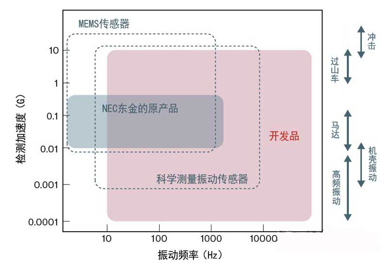 圖1:NEC東金開發(fā)的振動傳感器的檢測范圍