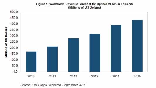 據(jù)IHS公司的最新MEMS市場研究報(bào)告,由于市場對寬帶互聯(lián)網(wǎng)服務(wù)的需求持續(xù)激增,預(yù)計(jì)2011年以及隨后幾年光MEMS銷售額強(qiáng)勁增長。光MEMS是超高速光纖網(wǎng)絡(luò)中的關(guān)鍵部件。