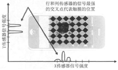 圖4 行和列傳感器的信號強(qiáng)度確定了觸摸的位置