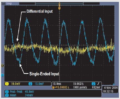 圖18 差分放大器基本消除了共模噪聲