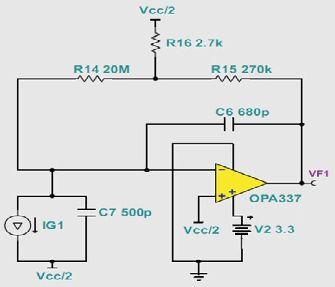 圖3 用于信號(hào)調(diào)節(jié)的電荷放大器
