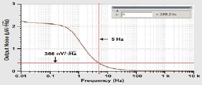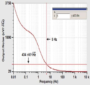 利用圖6所示原始電路,我們使用最初指定的一些噪聲值,可以通過(guò)方程式7再次估算出5Hz的噪聲。