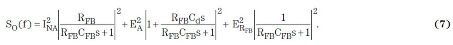 在第三項(xiàng)中,如果RFB = 270MΩ,則這一項(xiàng)對(duì)輸出噪聲的貢獻(xiàn)值約為 (2 μV/ √HZ /5.85=340nV /√HZ .