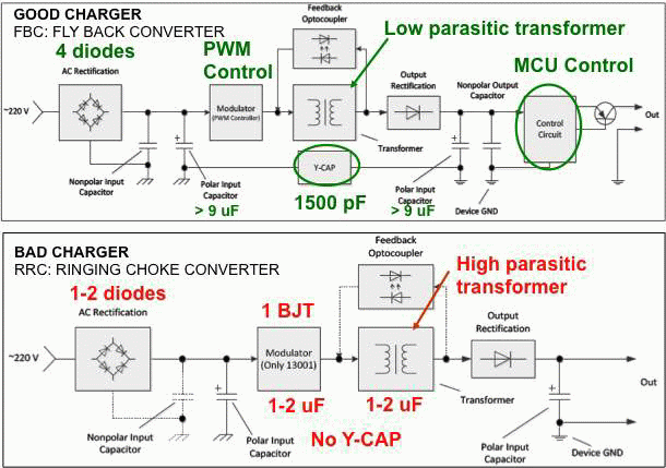 設(shè)計用于配合特定電話工作的OEM廠商的充電器具有較嚴(yán)格的噪聲規(guī)格,同時,在充電電路中廣泛采用USB連接器為配件市場創(chuàng)造了巨大的機會。為了在其中進(jìn)行競爭,配件廠商充分地降低充電器成本。采用低成本電子器件的充電器給手機充電將注入很多噪聲到觸摸屏,而導(dǎo)致其很可能無法使用。