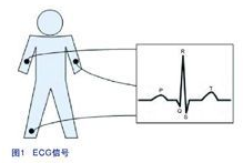 心電圖機(ECG)可實時記錄病人的心跳活動。心跳信號是通過三個連接到病人身體的電極測量出來。圖1所示為其中一個電極輸出的ECG信號,圖中包含有五個測量點,分別是Q、P、R、S、和T,這些測量點可用來診斷病人患上心臟病的可能性?! ?br />