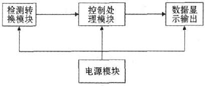 該系統(tǒng)主要以CAV424檢測芯片和微處理器控制模塊為核心, 另外還有輸出顯示模塊以及電源模塊等。系統(tǒng)框圖如圖2所示。