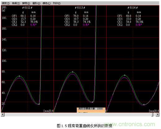 隨著電子技術(shù)與控制技術(shù)的快速發(fā)展,按鍵開關(guān)荷重位移曲線儀也要跟上時(shí)代的步伐,從一開始只能測出OF、OD和CK值發(fā)展到現(xiàn)在能同時(shí)測出23個(gè)參數(shù),有PK,CK,RPK,RLK,LK等值,可以通過設(shè)定上下限來保護(hù)儀器被壓壞荷重感應(yīng)器。最小顯示行程也從1mm發(fā)展到現(xiàn)在的0.001mm,最小顯示荷重也從10克精度到現(xiàn)在的0.01克精度,界面設(shè)定也從嵌入式發(fā)展到現(xiàn)在利用WINDOWS中文視窗畫面設(shè)定,操作簡單方便,且所有資料皆可儲(chǔ)存(試驗(yàn)條件、荷重曲線圖、測試結(jié)果、檢查報(bào)表…等等)。