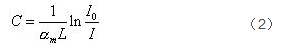 式中 為摩爾分子吸收系數(shù);C 為待測氣體濃度;L 為光和氣體的作用長度(傳感長度)。對上式進(jìn)行變換得: