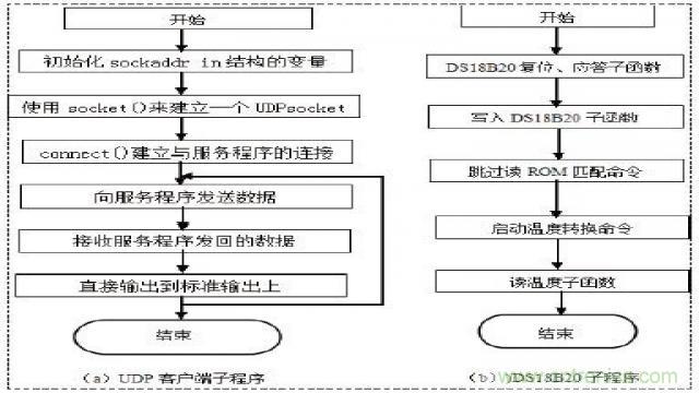 根據(jù)DS18B20的通訊協(xié)議,主機(jī)(單片機(jī))控制DS18B20完成溫度轉(zhuǎn)換必須經(jīng)過(guò)三個(gè)步驟:每一次讀寫(xiě)之前都要對(duì)DS18B20進(jìn)行復(fù)位操作,復(fù) 位成功后發(fā)送一條ROM指令,最后發(fā)送RAM指令,這樣才能對(duì)DS18B20進(jìn)行預(yù)定的操作。該流程框圖如圖2(b)所示。