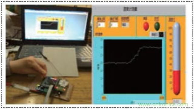 本系統(tǒng)對(duì)一個(gè)溫度傳感器傳輸?shù)臄?shù)據(jù)進(jìn)行了測(cè)試,得到的結(jié)果和溫度及所測(cè)的結(jié)果非常接近,但是其比溫度計(jì)的靈敏度和分辨率要高很多。另外系統(tǒng)工作也非常穩(wěn)定,環(huán)境的影響也很小。圖3是測(cè)試的結(jié)果,其中20℃的時(shí)候?yàn)槭覝兀瑴囟壬呤怯捎谟檬钟|摸傳感器所致。