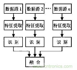 2.特征層融合:特征層融合屬于中間層次,先從每種傳感器提供的觀測數(shù)據(jù)中提取的有代表性的特征,這些特征融合成單一的特征向量,然后運用模式識別的方法進行處理。這種方法的計算量及對通信帶寬的要求相對降低,但由于部分數(shù)據(jù)的舍棄使其準確性有所下降。