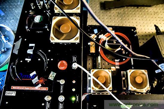 在使用該裝置時(shí),研究人員將激光照射在物體上,通過(guò)分析反射光,確認(rèn)哪些波長(zhǎng)沒(méi)有反射回來(lái),他們便可以通過(guò)其吸收的特征紅外波長(zhǎng)來(lái)識(shí)別化學(xué)物質(zhì)。