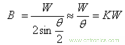 莫爾條紋的間距與柵距W和兩光柵刻線的夾角θ(單位為rad)之間的關(guān)系為