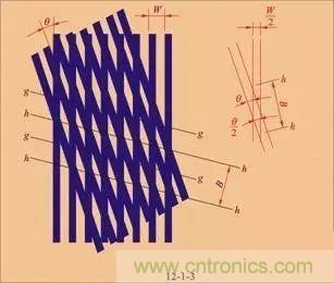 將主光柵與標(biāo)尺光柵重疊放置,兩者之間保持很小的間隙,并使兩塊光柵的刻線之間有一個(gè)微小的夾角θ,如圖所示。