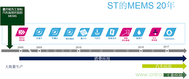 在過(guò)去的20年,消費(fèi)類應(yīng)用使不同類別的MEMS傳感器實(shí)現(xiàn)了從雛形,到大批量生產(chǎn)、直至大批量應(yīng)用的過(guò)程,這些傳感器包括加速計(jì)、陀螺儀、慣導(dǎo)模塊、磁力計(jì)、氣壓計(jì)、溫度計(jì)、氣體壓力計(jì)、以及最近幾年越來(lái)越多的環(huán)境類傳感器。