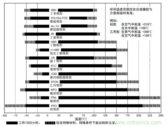 圖3:典型O型圈材料的使用溫度范圍(source:Parker)