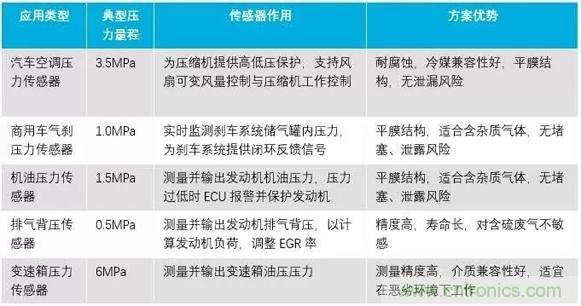 表2:汽車領(lǐng)域陶瓷電容壓力傳感器典型應(yīng)用