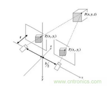雙目視覺的測距本質(zhì)上也是三角測距法,由于兩個攝像頭的位置不同,就像我們?nèi)说膬芍谎劬σ粯樱吹降奈矬w不一樣。兩個攝像頭看到的同一個點P,在成像的時候會有不同的像素位置,此時通過三角測距就可以測出這個點的距離。與結構光方法不同的是,結構光計算的點是主動發(fā)出的、已知確定的,而雙目算法計算的點一般是利用算法抓取到的圖像特征,如SIFT或SURF特征等,這樣通過特征計算出來的是稀疏圖。