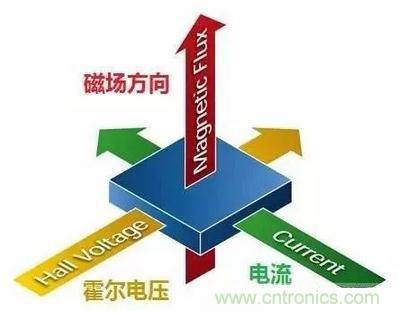 在導(dǎo)體上外加與電流方向垂直的磁場(chǎng),會(huì)使得導(dǎo)線中的電子受到洛倫茲力而聚集,從而在電子聚集的方向上產(chǎn)生一個(gè)電場(chǎng),此電場(chǎng)將會(huì)使后來(lái)的電子受到電力作用而平衡掉磁場(chǎng)造成的洛倫茲力,使得后來(lái)的電子能順利通過(guò)不會(huì)偏移,此稱為霍爾效應(yīng)。而產(chǎn)生的內(nèi)建電壓稱為霍爾電壓。