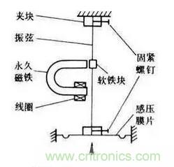 振弦式壓力傳感器的敏感元件是拉緊的鋼弦,敏感元件的固有頻率與拉緊力的大小有關(guān)。弦的長(zhǎng)度是固定的,弦的振動(dòng)頻率變化量可用來(lái)測(cè)算拉力的大小,即輸入是力信號(hào),輸出的是頻率信號(hào)。振弦式壓力傳感器分為上下兩個(gè)部分組成,下部構(gòu)件主要是敏感元件組合體。上部構(gòu)件是鋁殼,包含一個(gè)電子模塊和一個(gè)接線端子,分成兩個(gè)小室放置,這樣在接線時(shí)就不會(huì)影響電子模塊室的密封性。