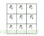 自適應(yīng)閾值分割以后的激光條紋具有一定的寬度,直接處理計(jì)算量巨大而且精度較低,需要對(duì)圖像進(jìn)行骨架細(xì)化得到單像素的線。