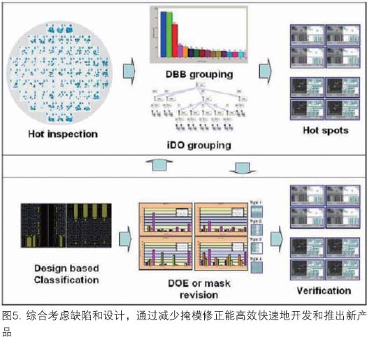 用與設(shè)計(jì)相關(guān)的檢測(cè)設(shè)置,現(xiàn)在可以產(chǎn)生更智能化的檢測(cè)菜單,注意力集中在最重要的芯片區(qū)域。這一技術(shù)已成功地在開(kāi)發(fā)和生產(chǎn)工廠中進(jìn)行了試驗(yàn)。引入新方法后,缺陷識(shí)別更有效,因而能通過(guò)分析實(shí)驗(yàn)結(jié)果減少工藝開(kāi)發(fā)時(shí)間(圖5)。由于能方便地監(jiān)控關(guān)鍵結(jié)構(gòu),就可以評(píng)估每一組實(shí)驗(yàn),以便選擇刻印圖形結(jié)果最好的工藝條件。