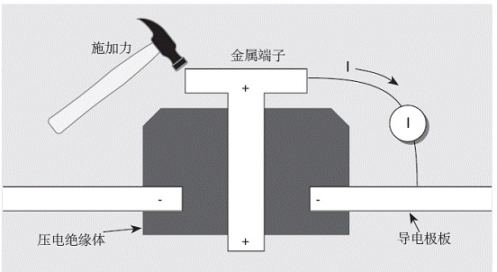 某些晶體材料用作絕緣端子和連結(jié)件時(shí),若向其施加機(jī)械應(yīng)力,就會(huì)產(chǎn)生壓電電流。在某些塑料中,電荷的儲(chǔ)存使該材料的性質(zhì)類(lèi)似于壓電材料。壓電絕緣體的端子示于圖1。