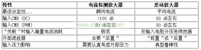 顯而易見(jiàn),雖然電流檢測(cè)放大器和差動(dòng)放大器工作方式不同,卻履行同樣的功能。差動(dòng)放大器將高輸入電壓衰減,使信號(hào)達(dá)到放大器可以接受的電平。電流檢測(cè)放大器將差分輸入電壓轉(zhuǎn)換為電流,然后再轉(zhuǎn)換至以地為參考的電壓;其輸入放大器因采用高壓制作工藝,能承受高共模電壓,。毫無(wú)疑問(wèn),兩個(gè)架構(gòu)的不同將導(dǎo)致其性能差異,設(shè)計(jì)工程師在選擇高端電流檢測(cè)解決方案時(shí)必須考慮這些性能差異。通常,廠商的數(shù)據(jù)手冊(cè)已提供了大部分信息,可根據(jù)精度、速度、功耗及其他參數(shù)對(duì)器件的類(lèi)型做出正確判斷。然后,器件架構(gòu)內(nèi)在的某些重大差異是無(wú)法在數(shù)據(jù)手冊(cè)中立刻發(fā)現(xiàn)的,但這些也是非常重要的設(shè)計(jì)考慮事宜。下面給出了一些工程師在實(shí)現(xiàn)最佳解決方案時(shí)必須考慮的關(guān)鍵點(diǎn)。